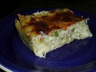 Bring a large pot of water to a boil, add in 1 T. salt and the noodles. Cook for 7-8 minutes until tender. Drain, run cold water over them to keep from sticking and set aside. In a medium skilled, heat the oil and sauté the chicken till cooked through, add in the broccoli, onions and garlic and cook till onions are translucent. Remove from heat and set aside. In another pot, melt the butter and whisk in the flour. Cook for 1 minute and add in the chicken stock and milk, whisking until the sauce begins to thicken. Cook until the sauce heavily coats the back of a spoon. Remove from heat and stir in the basil, salt, parmesan cheese and 1/4 C. of mozzarella cheese. Add the chicken mixture to the sauce and combine well. Assemble…In a lightly greased 9 x 13 pan place a layer of the noodles, spoon an good even layer of the sauce mixture over the top and sprinkle with 1/4 of the remaining cheese. Repeat for a second layer ending with a top layer of noodles and then spoon any remaining sauce of the top and sprinkle with remaining cheese. Bake at 375 degrees for 30 minutes or until golden brown and bubbly.
