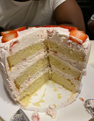 Stir in chopped strawberries on low speed. Remove the bowl from the mixer. Gently fold in the whipped cream with a spatula until well combined.