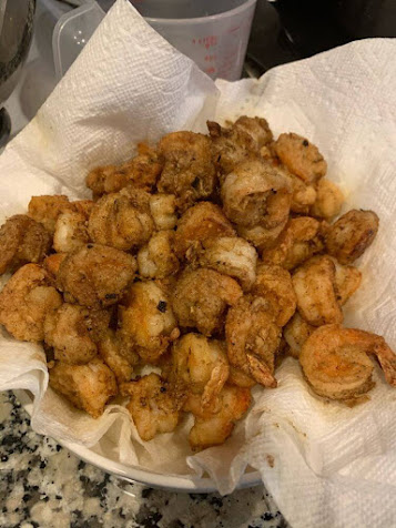 Use paper towels to pat the shrimp dry. Toss the shrimp with salt, black pepper, and garlic powder.