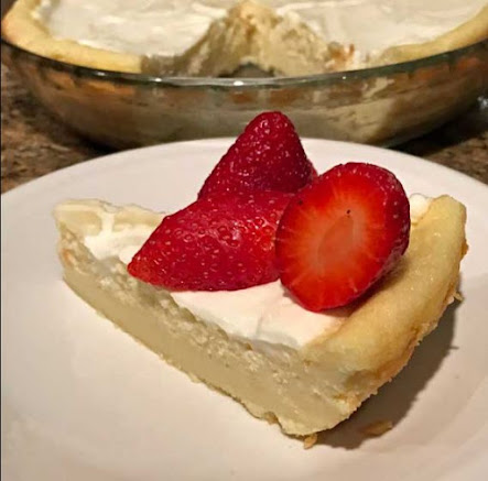 In a blender, blend the room temperature milk, eggs, sugar, vanilla and Bisquick for 15 seconds. Cut the softened cream cheese into pieces and add it, then blend for about 2 minutes or until smooth.