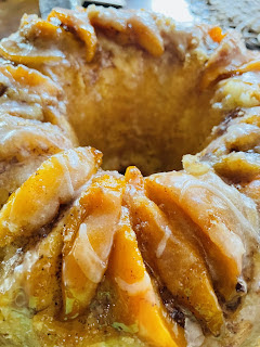 7. Add the peaches and stir until well coated (about 3-5 minutes). Pour into the prepared Bundt pan. Pour the batter over the peaches. Make sure your Bundt pan has plenty of flour and oil to prevent sticking