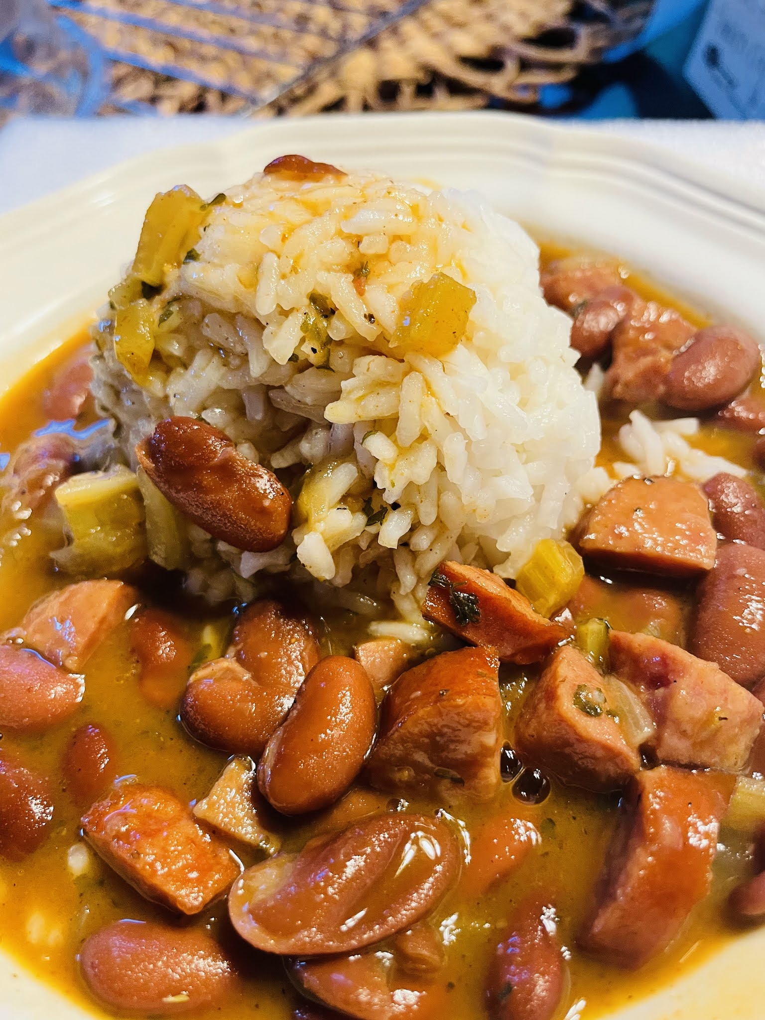 - 2 cans red beans, rinsed- who has all day to wait for dry beans to cook.