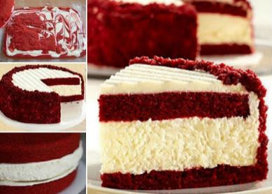 Top the Red Velvet cake with the cheesecake layer carefully.